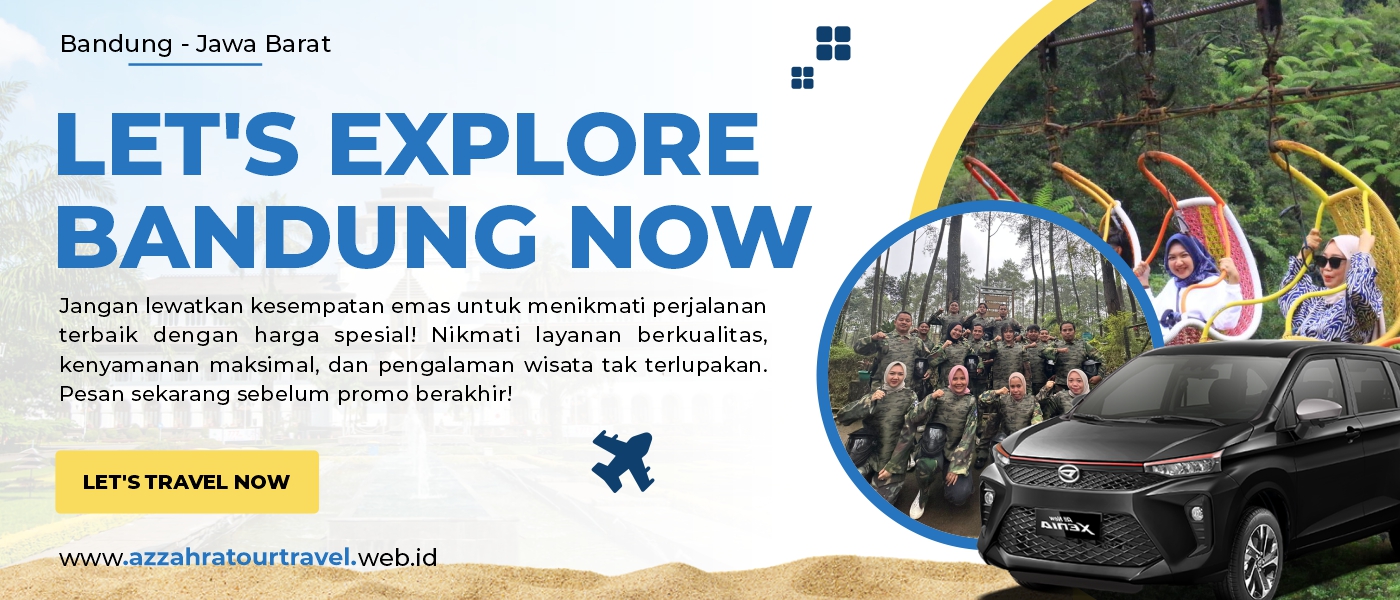 Azzahra Tour menghadirkan solusi perjalanan lengkap untuk rekreasi maupun bisnis, memastikan setiap momen menjadi pengalaman berkesan. Dengan berbagai paket tour menarik ke Bandung, layanan kami cocok untuk acara kantor, perjalanan bisnis, dan liburan keluarga. Kami juga menyediakan layanan khusus untuk hajat tour serta perjalanan ziarah/religi, yang dirancang memberikan kedamaian dan makna spiritual di setiap langkah perjalanan Anda.